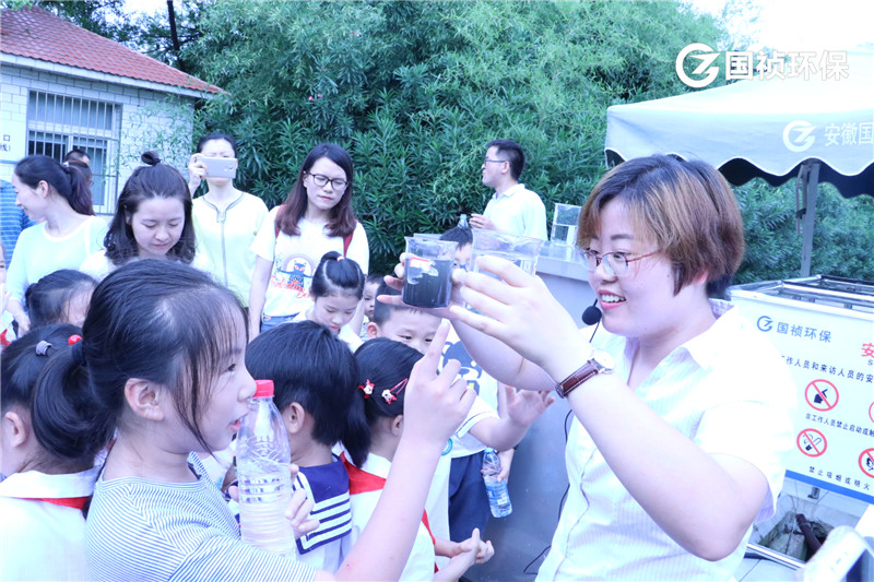 国祯环保陈晶晶给小朋友介绍介绍污水处理流程